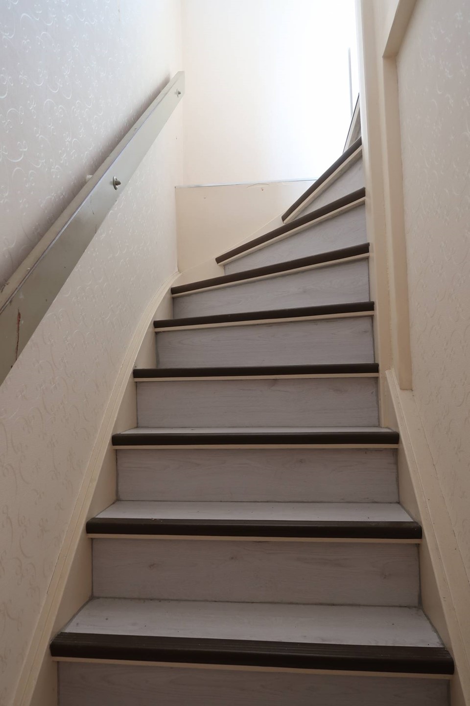 Via de trap in de hal bereik je de bovenste verdiepingen;