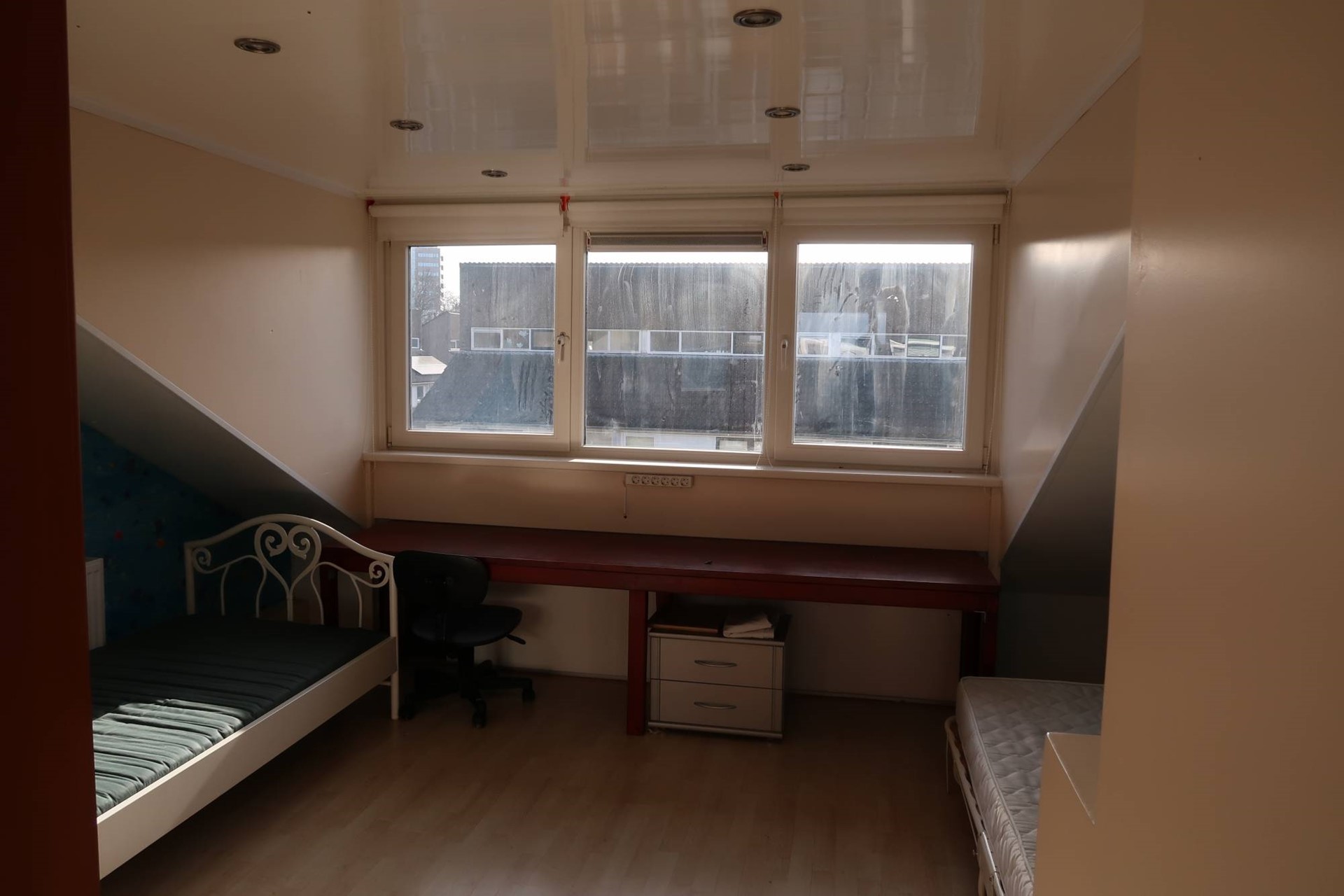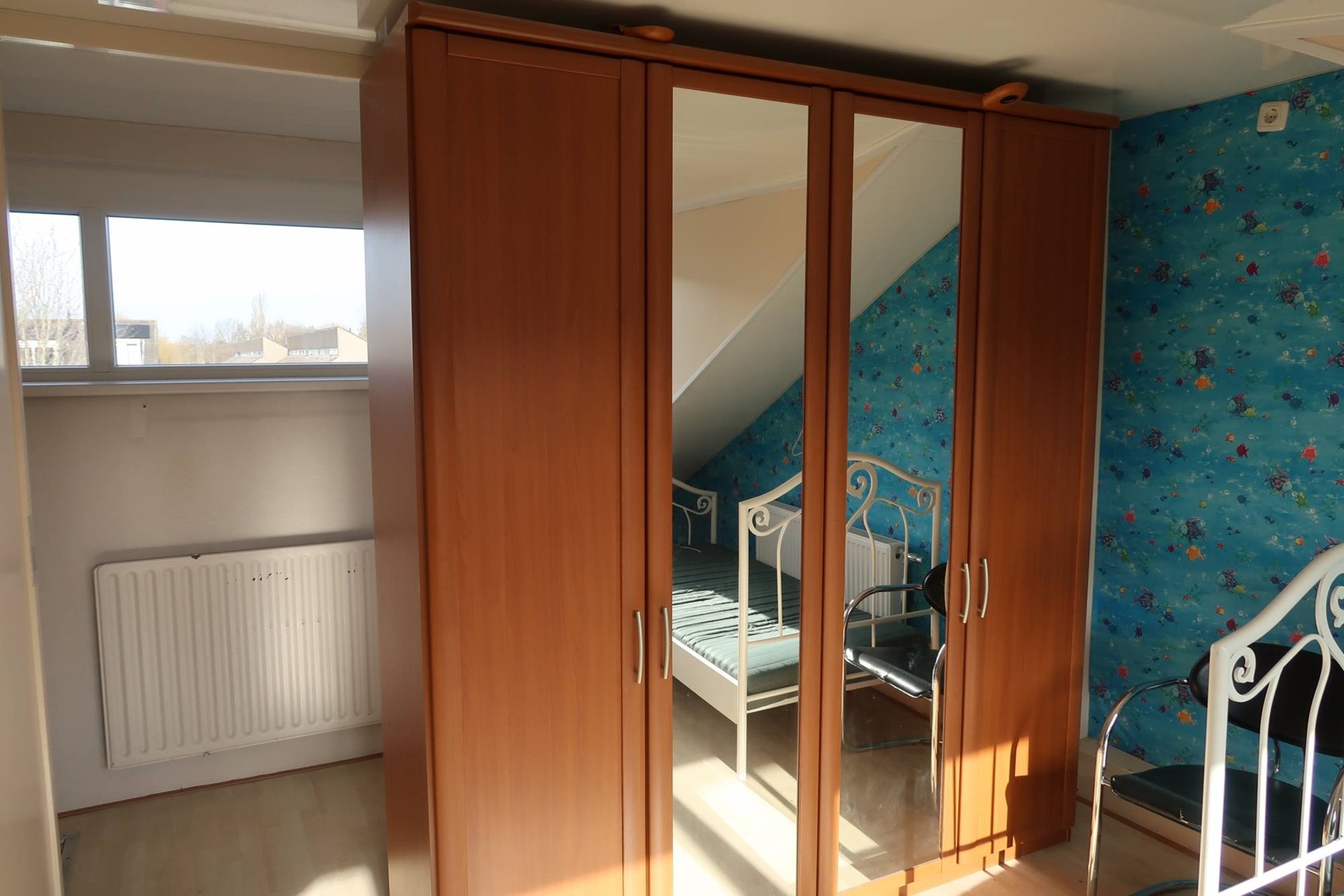 Een afgesloten trap leidt naar de bovenste etage, met stookruimte, wasmachineaansluiting en een, door middel van een dakkapel, ruime derde slaapkamer.
