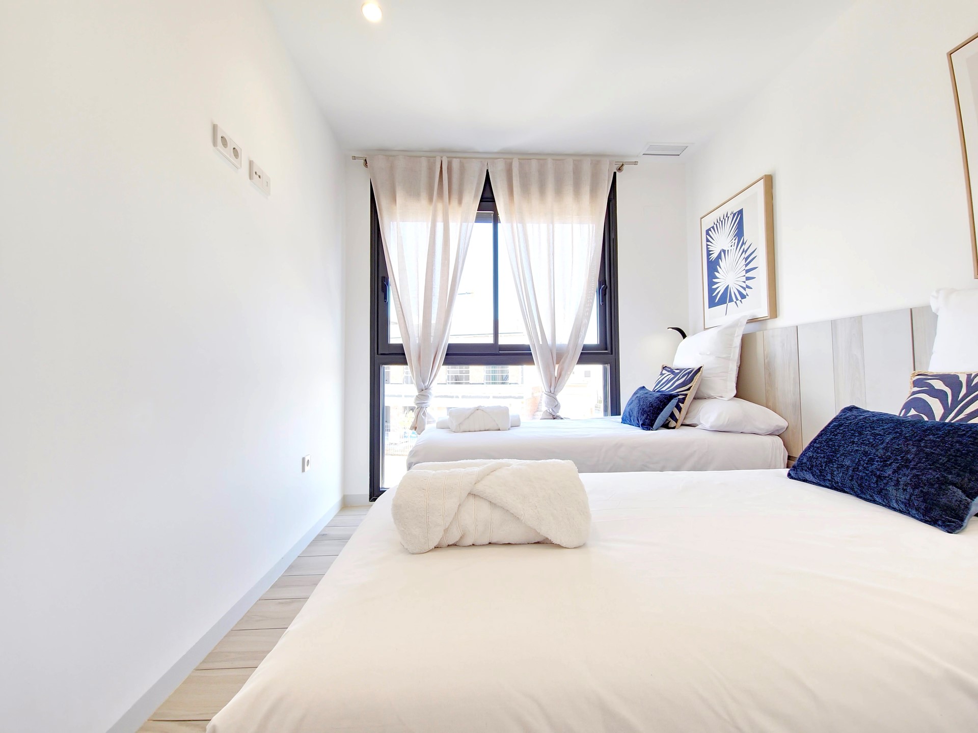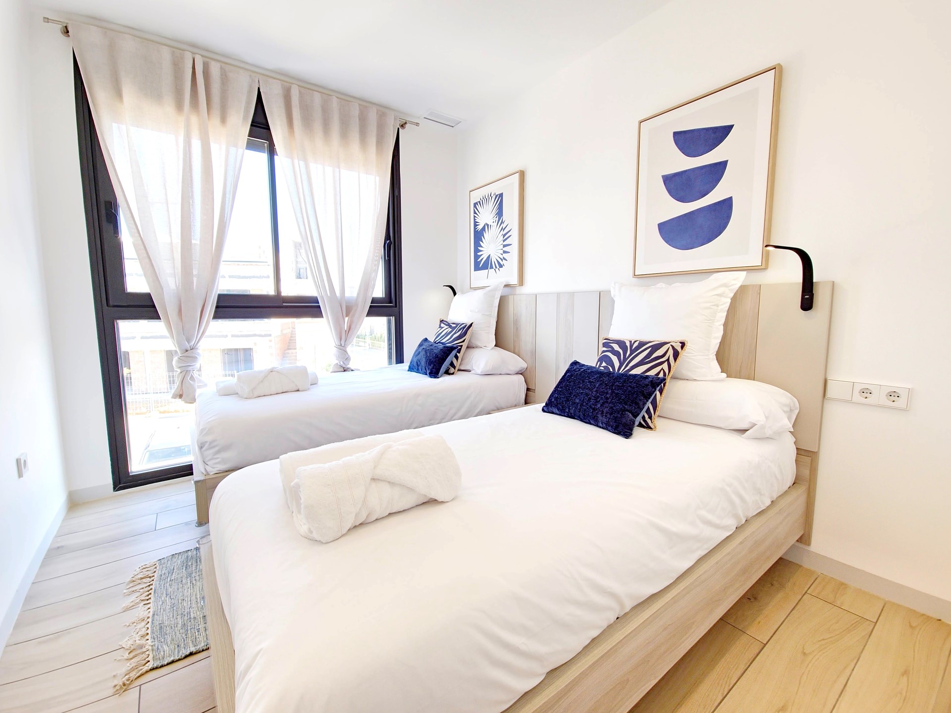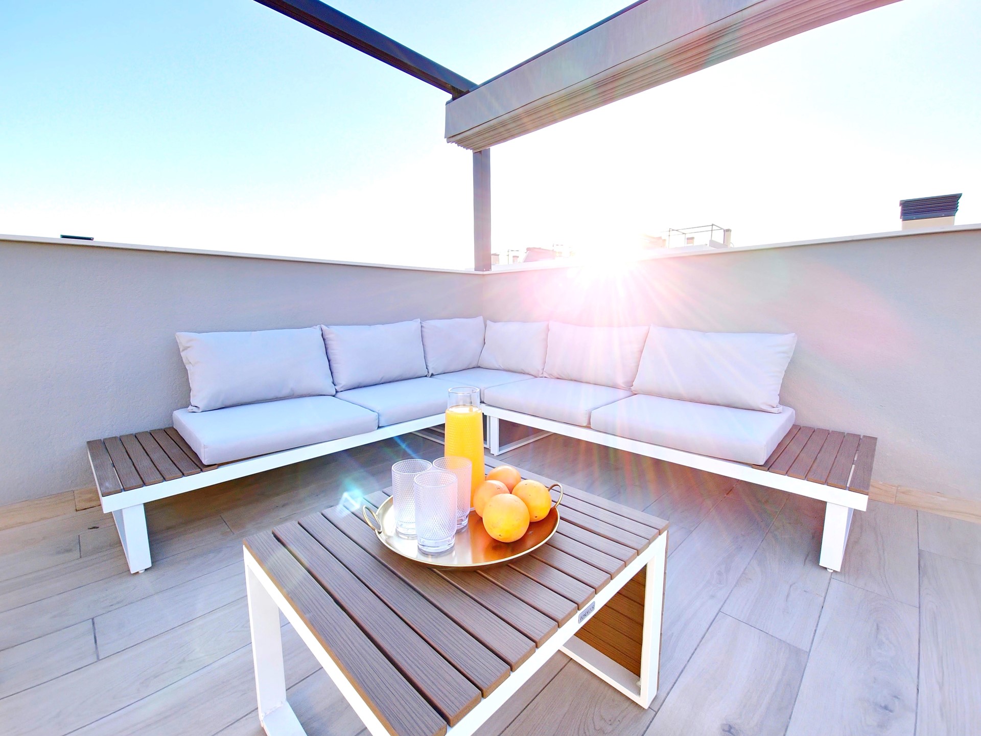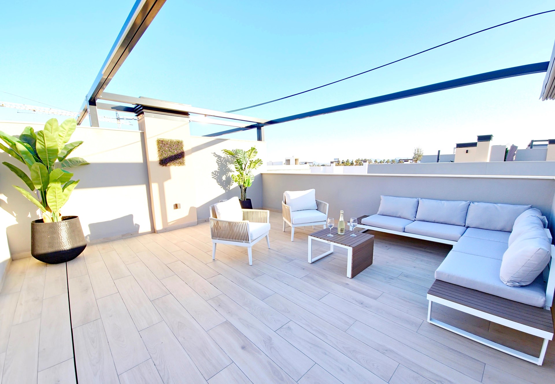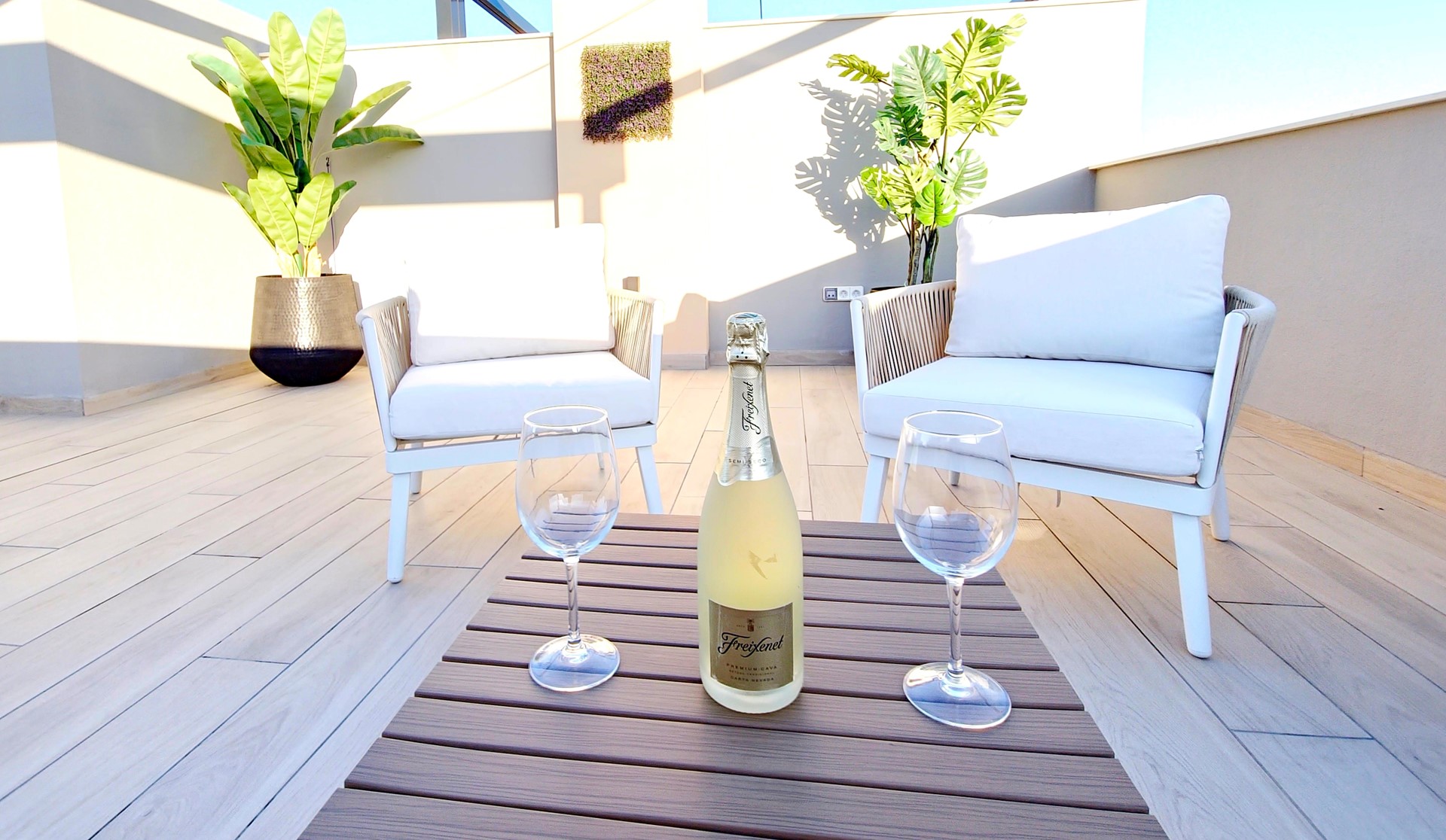 Geniet van de Spaanse zon op je privébalkon of ontspan op het ruime dakterras van ca. 75 m² met panoramisch uitzicht over het resort — ideaal voor een diner bij zonsondergang of een ontspannen dag in de zon.