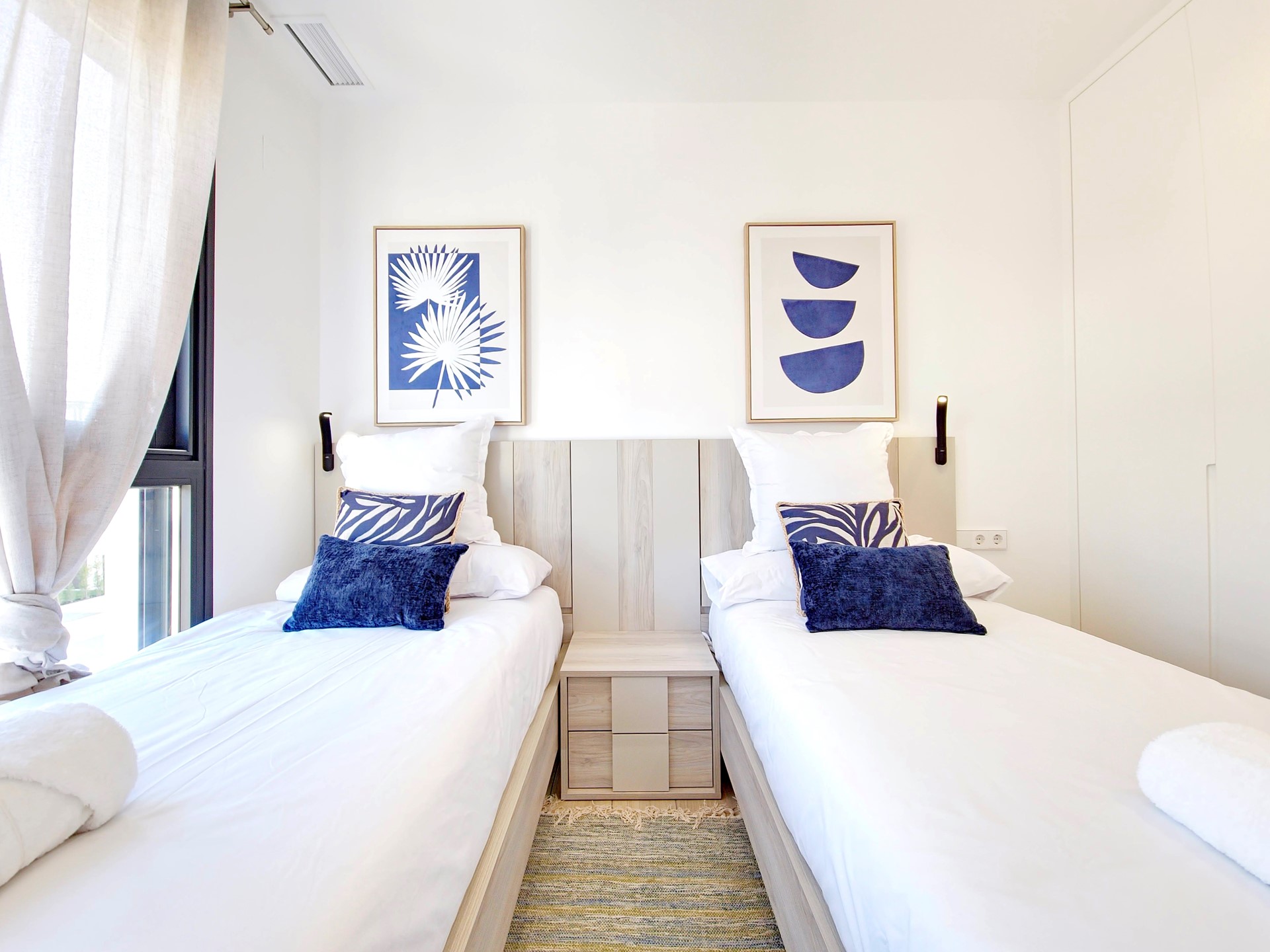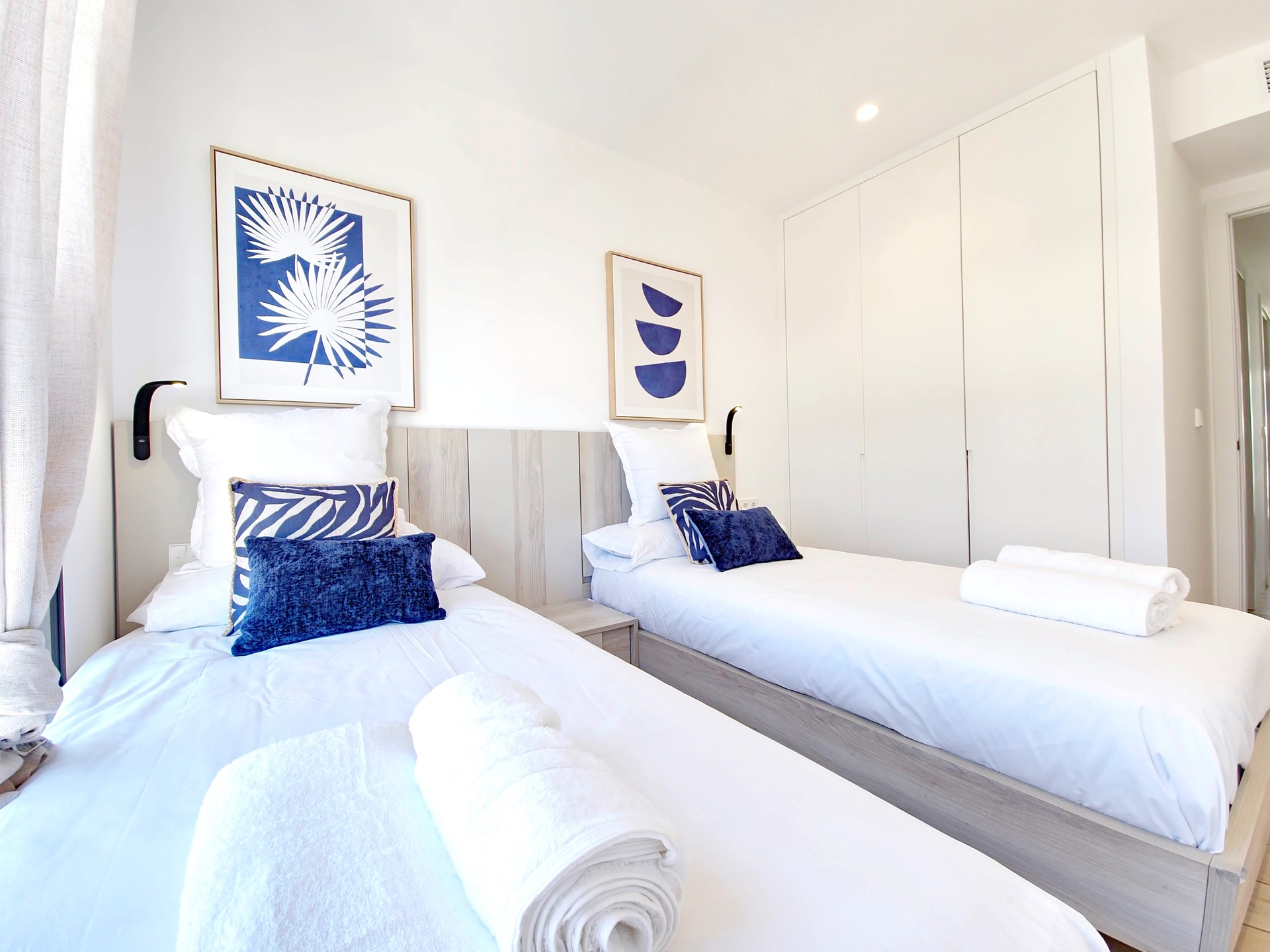 De twee ruime slaapkamers beschikken over ingebouwde garderobekasten en airconditioning.