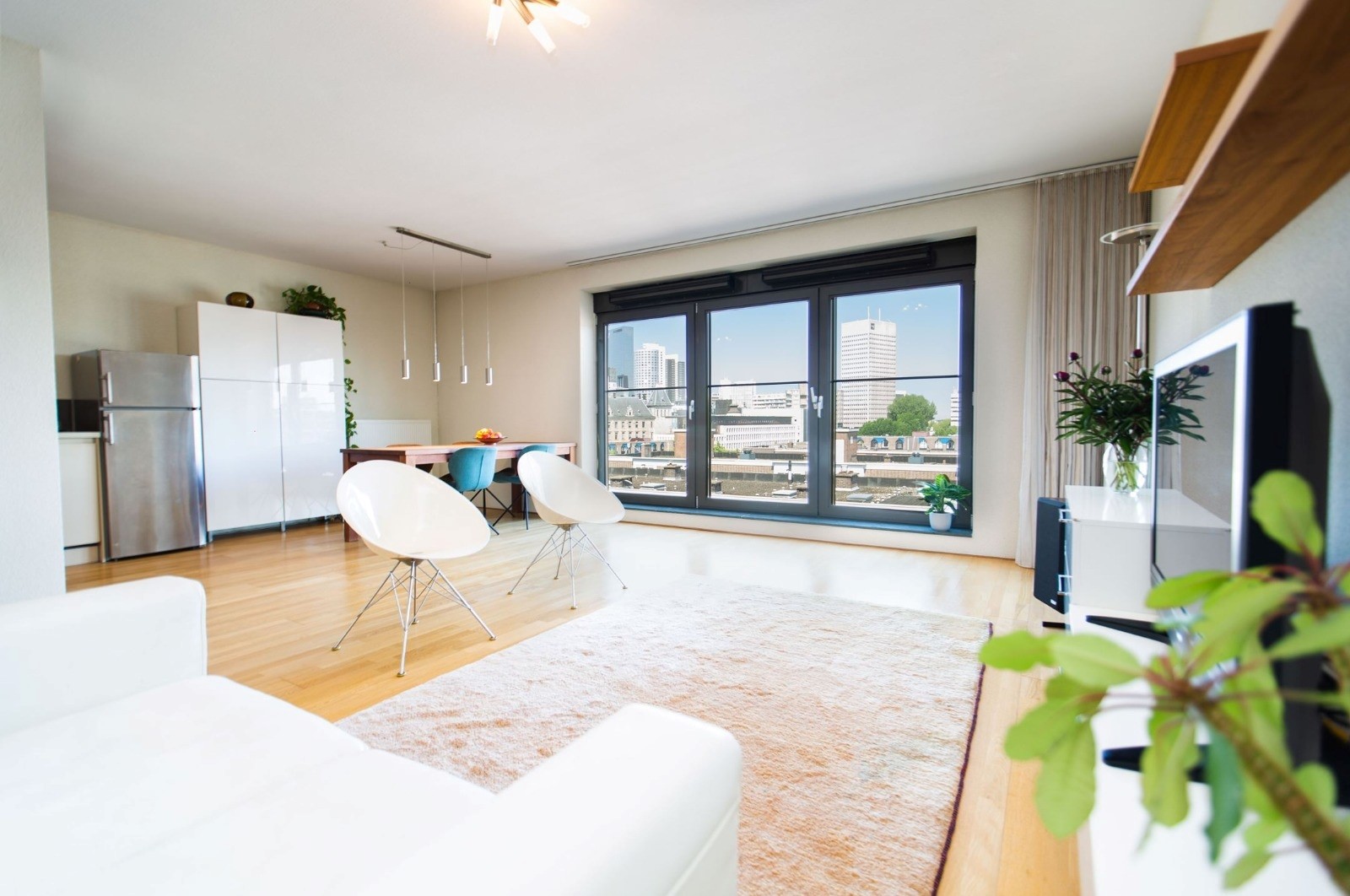 Stap de woonkamer binnen en u wordt direct verrast door de ruimte, de lichtinval én het fenomenale uitzicht over de Rotterdamse skyline. De moderne L-vormige keuken is uitgerust met alle inbouwapparatuur die koken tot een plezier maakt. Verder beschikt het appartement over twee fijne slaapkamers, een strak afgewerkte badkamer met ligbad én inloopdouche, een apart toilet en een royale inpandige berging met wasruimte.